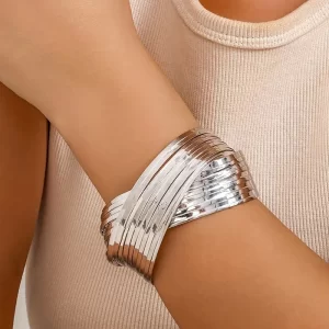 A modern silver-plated bangle-style cuff bracelet crafted for women and girls. Sleek, lightweight, and versatile—perfect for everyday elegance or pairing with any chic outfit.