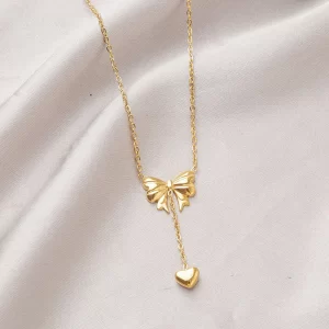 Gold-Plated Stainless Steel Heart Bow Pendant