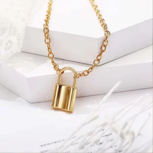 Glitzy Lock Design Gold-Plated Chain Necklace