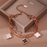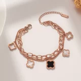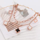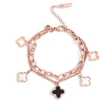 Be the first to review “Stainless Steel Rose Gold Plated Mother of Pearls Clover Wraparound Bracelet For Women”