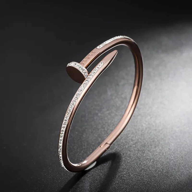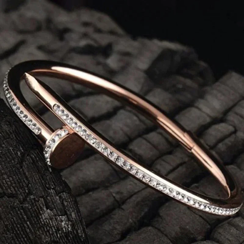 Be the first to review “Stainless Steel Rose Gold Plated Stainless Steel AD Studded Nail Bracelet For Women”