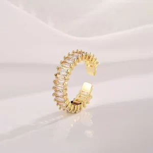 Gold Plated Stainless Steel Anti Tarnish White Adjustable Finger Ring For Women