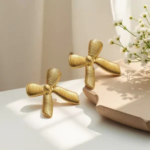 Gold-Plated Anti Tarnish Stainless Steel Bow Themed Earrings