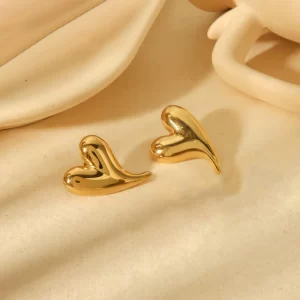Gold Plated Stainless Steel Anti Tarnish Heart Themed Stud Earrings