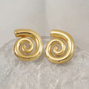 Gold Plated Stainless Steel Anti Tarnish Spiral Chunky Earrings